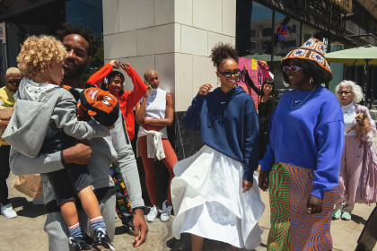 Alex Webb was asked to collaborate on the Fall 2021 Nike Fleece launch campaign, “Fleece for Everybody Everywhere.” The creative team transformed downtown Los Angeles’ Santee Street into a carnival-like atmosphere where Alex captured the scene, featuring rapper IDK and Dj Anais B.