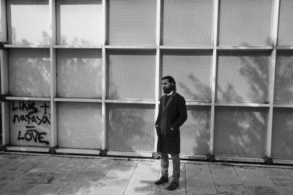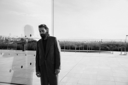 Model Paraskevas Babourakas wearing a shirt Rag & Bone, a coat Yiorgos Eleftheriades, Brunello Cucinelli trousers and Churches shoes.